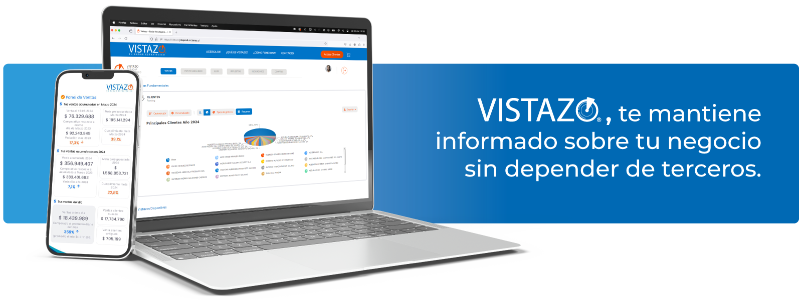 VISTAZO hace parte del trabajo extrayendo, ordenando y clasificando los datos de tu negocio y los muestra de manera simple y atractiva para que tomar buenas decisiones sea más sencillo.